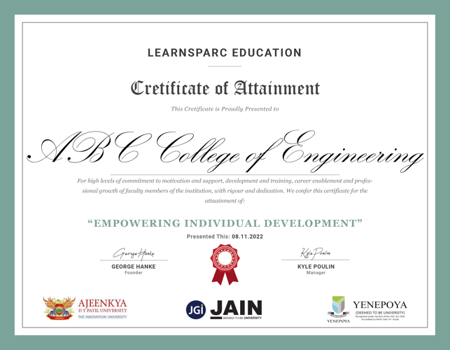 The year 1 of membership will start with “Certificate of Attainment in Empowering Individual Development” for the college and Certificate of Progression for the Faculty members across five (5) key areas of education: